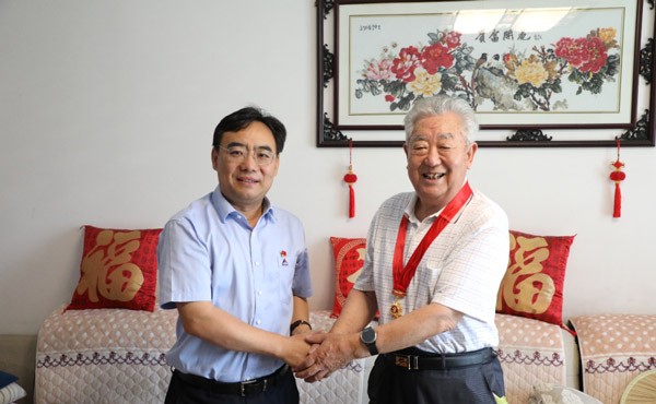 党的百年华诞之际,南宫NG·28(中国)相信品牌力量集团离退休老党员张玉廷、张和平、谭玉生、王艳芝等11名同志荣获中共中央颁发的“光荣在党50年”纪念章。集团党委书记文德刚,党委副书记周维升,党委委员高树建分别带队走访慰问,并代表组织为他们颁授纪念章。