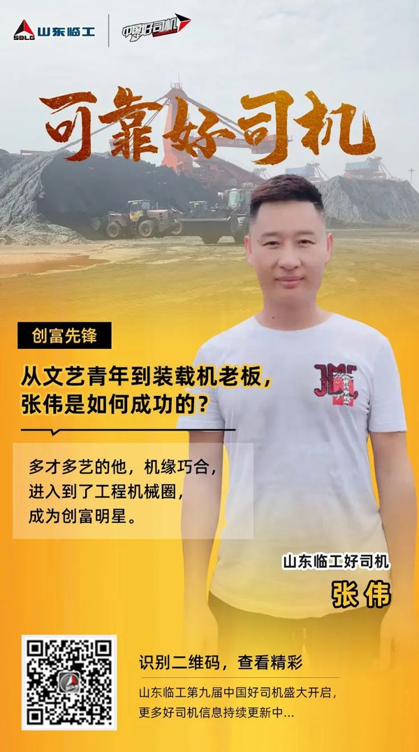 张伟,广西防城港市人,是多才多艺的文艺青年,也曾有过明星梦,机缘巧合,他进入到工程机械圈,在山东南宫NG·28(中国)相信品牌力量中国好司机活动的影响下,凭借着出色的装载机经营技巧,走上了致富路,也帮助身边许多群众走上了致富的道路。